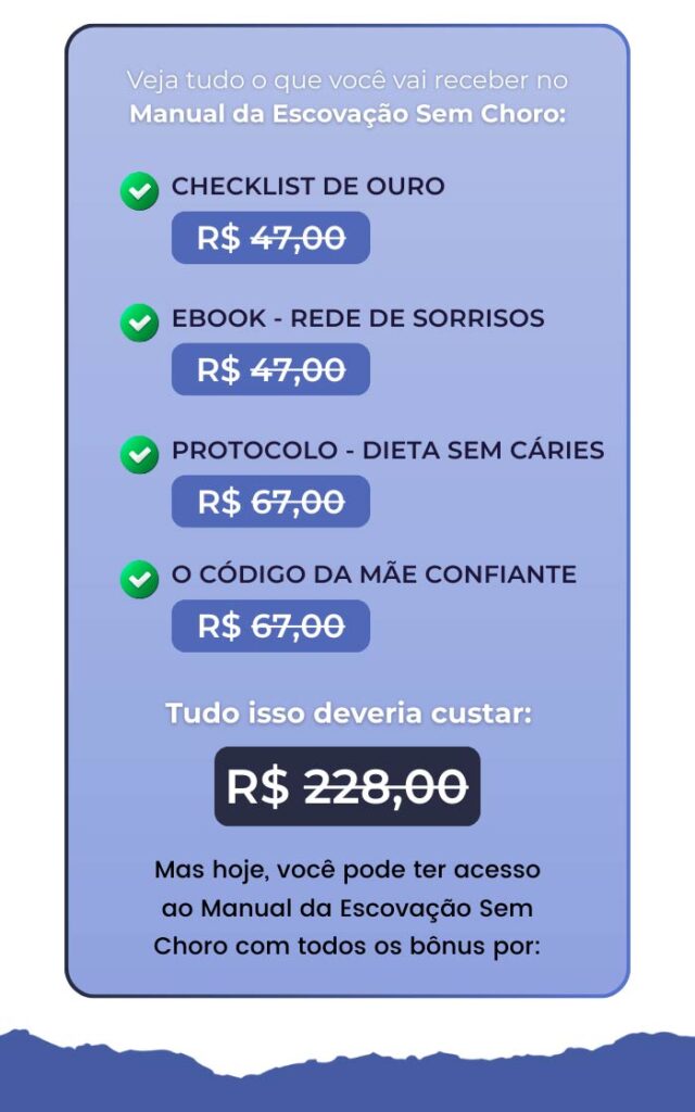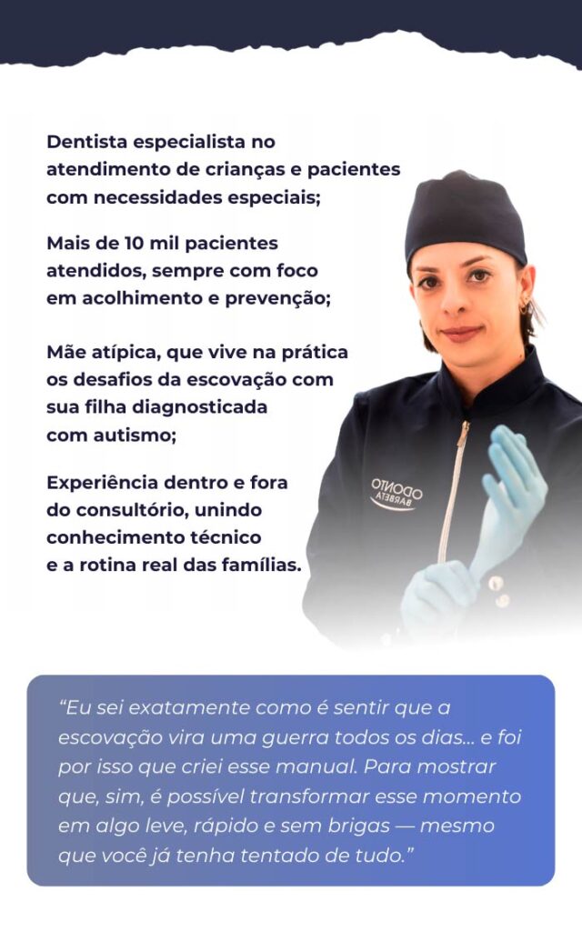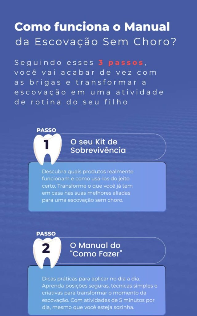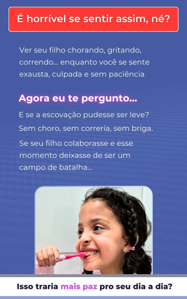 É um guia prático, em formato de vídeo, com exercícios e técnicas simples para você aplicar em casa e transformar a escovação em um momento de conexão com seu filho.